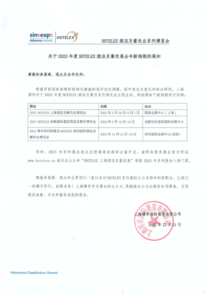 歲聿云暮,一元復(fù)始,萬象更新。2023年即將到來之際,上海博華旗下的HOTELEX系列展會(huì)作為深耕酒店及餐飲產(chǎn)業(yè)鏈30年,積累超80萬買家資源的標(biāo)桿品牌展會(huì),將繼續(xù)探討行業(yè)新趨勢,啟迪行業(yè)新思維,與廣大合作伙伴共同把握行業(yè)新機(jī)遇!