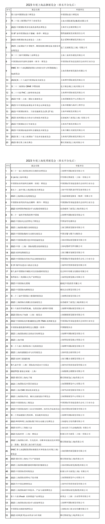 上海博華共有九個(gè)展會(huì)榜上有名,分別是