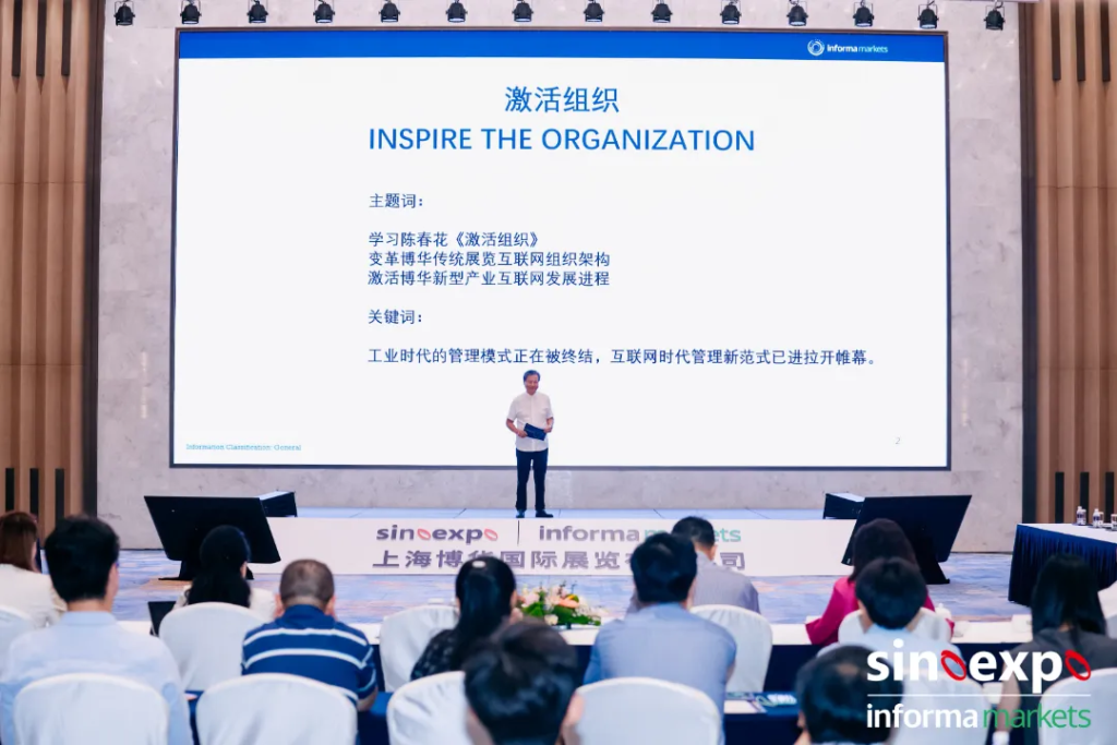 博華的創(chuàng)始人及董事王明亮先生率先做了開場演講。談到激活組織,王董提到了學(xué)習(xí)陳春花教授的《激活組織》的著作,變革博華傳統(tǒng)展覽互聯(lián)網(wǎng)的組織架構(gòu)和激活博華新型產(chǎn)業(yè)互聯(lián)網(wǎng)的發(fā)展進程。他指出互聯(lián)網(wǎng)的管理新范式已經(jīng)拉開帷幕。我們的年中會議,組織和個人的激活二個方面都要談。公司的輪值主席團及核心管理層的干部,在激活組織中的職責(zé),是要建成一個強大的組織平臺,能夠聚合大量的個體智慧,讓每個個體都能在這個平臺上釋放出個人的巨大的人生價值。