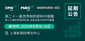 尊敬的各位參展商、觀眾及合作伙伴: 受近期疫情影響,原定于2022年6月21-23日在上海新國際博覽中心舉辦的CPhI & P-MEC China 2022被迫延期舉辦。在充分聽取相關(guān)各方的意