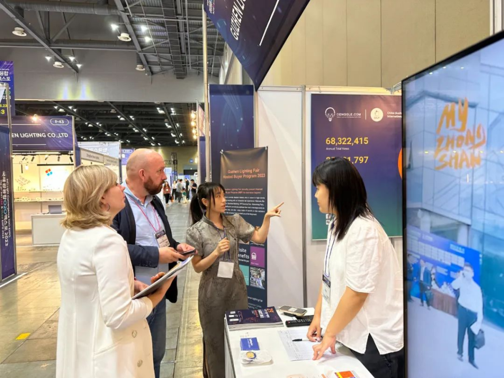 Guzhen Lighting Fair has an 18-square-meter booth at the exhibition site, equipped with a professional team proficient in Chinese, Korean and English. Promotional materials and equipment have been prepared in advance during the exhibition layout. Furthermore, with the support of the organizers, the promotion went smoothly.