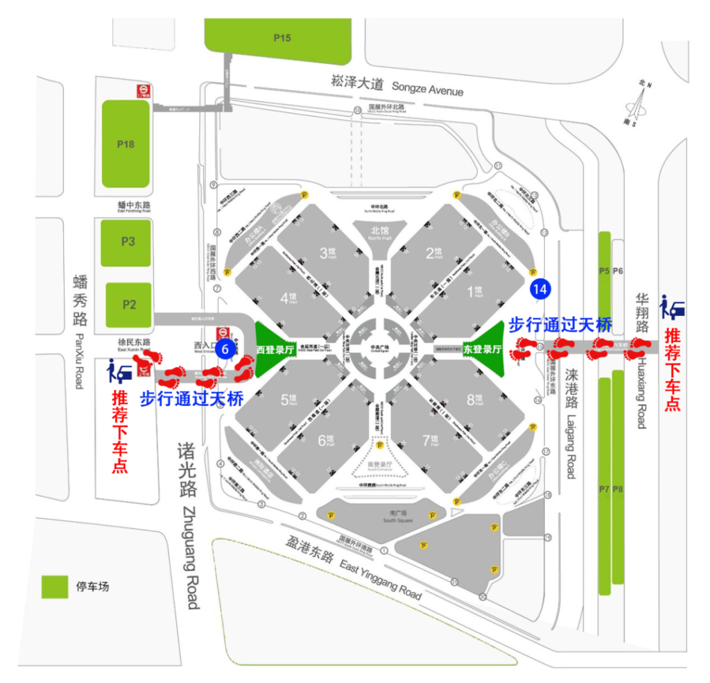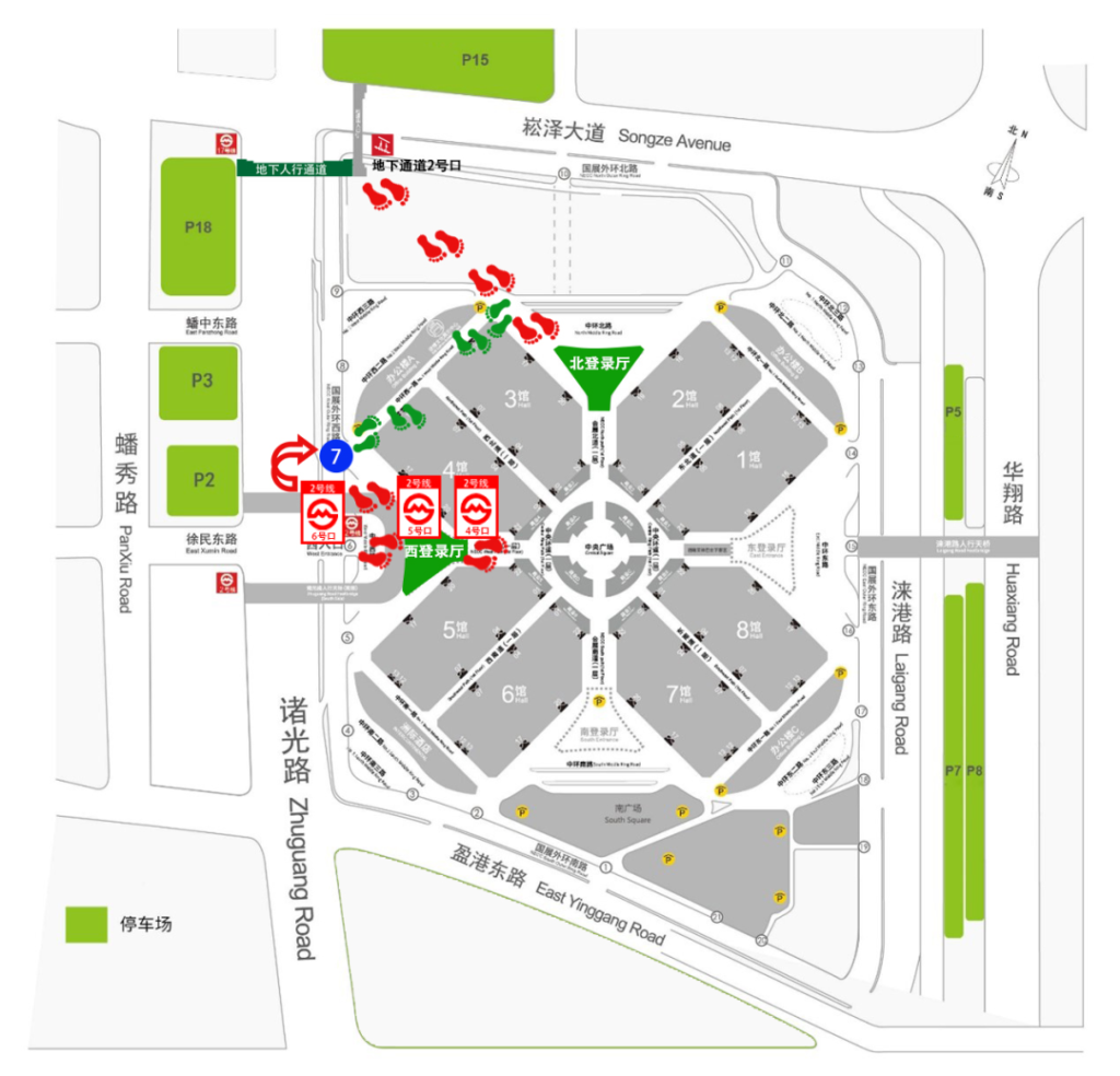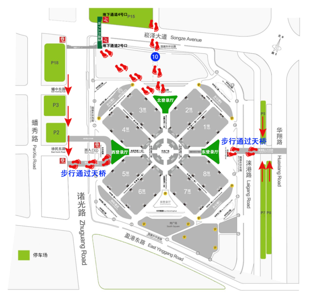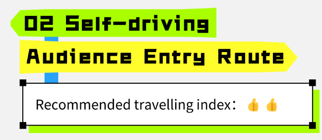 Audience entry by car is recommended to park in the surrounding car parking (green area)(*P.S. Parking in the venue is inconvenient), according to the needs of the visit, choose a suitable route into the exhibition hall.