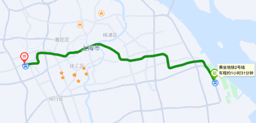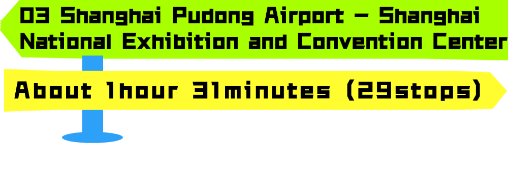 Walk to 【Pudong International Airport Station】-Take Metro Line 2 – Get off at Exit 5 of 【National Exhibition and Convention Center Station】.