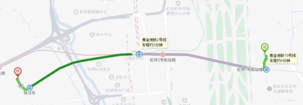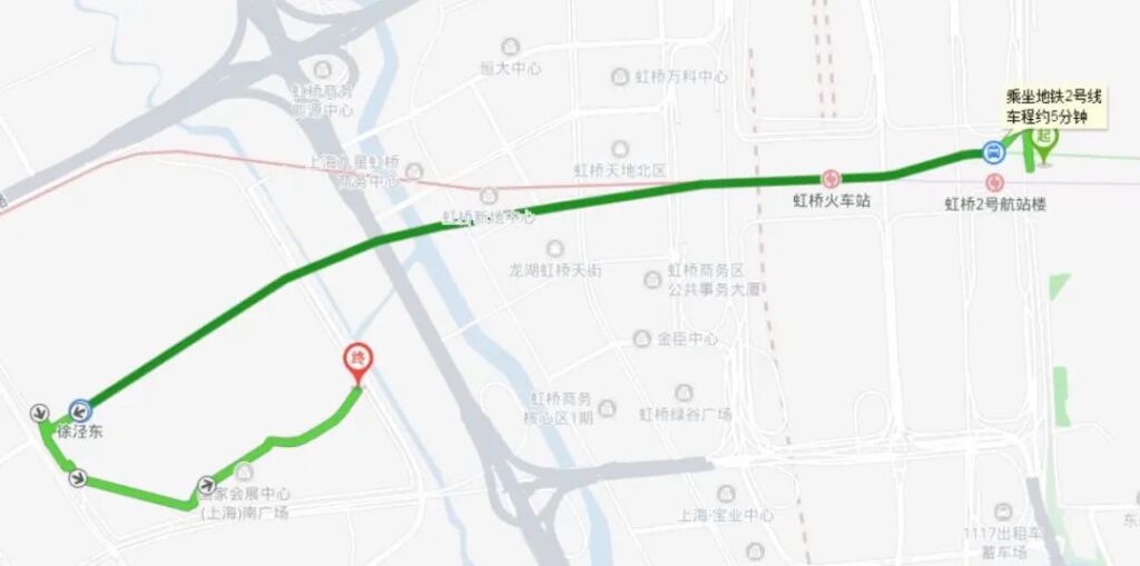 Get on at【Hongqiao Terminal 1】- Take Metro Line 10 – Get off at 【Hongqiao Railway Station】- Transfer to Metro Line 2 – Get off at Exit 5 of 【National Exhibition and Convention Center Station】.
